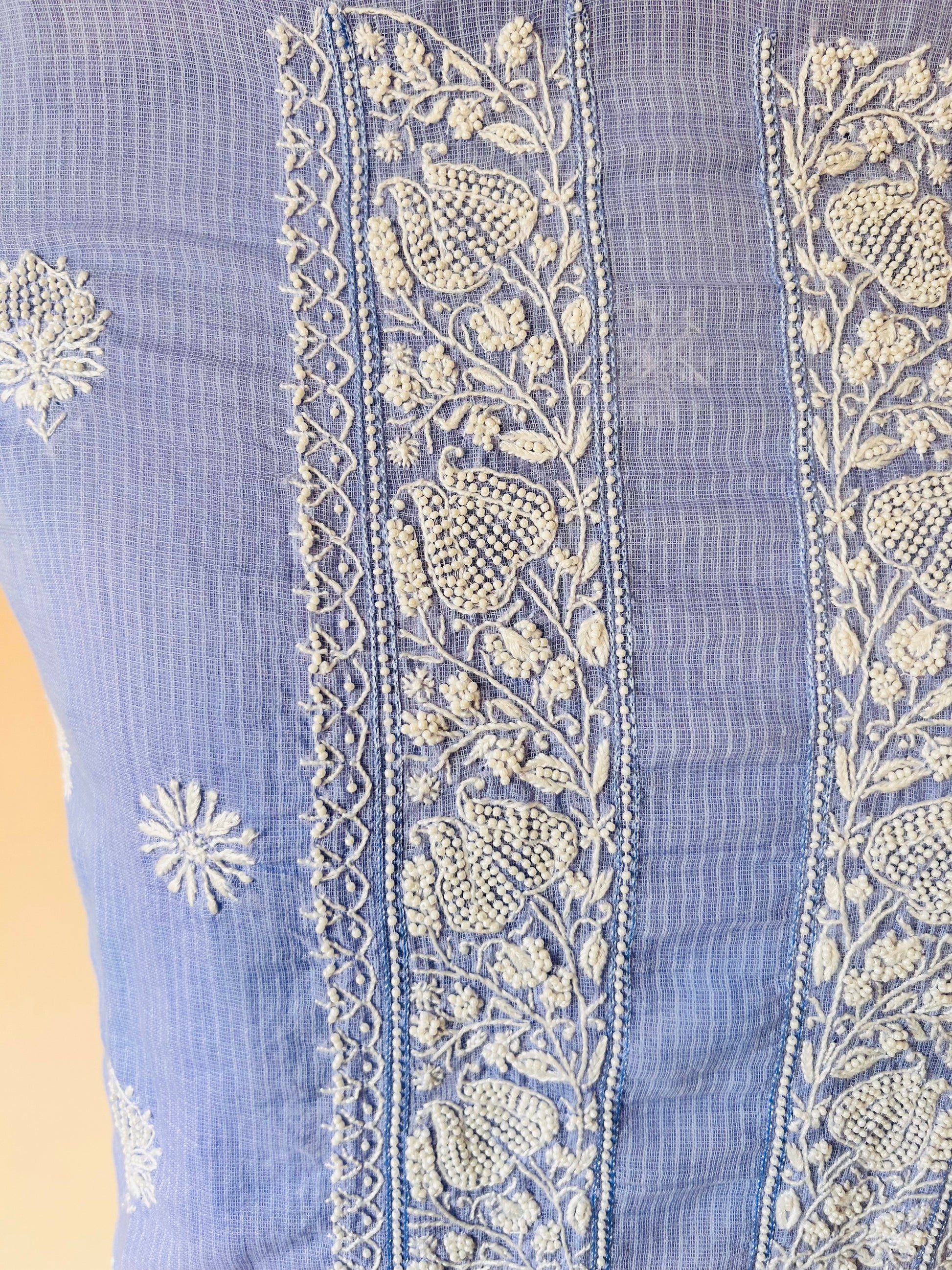 The Kota Unstitched Kurta, adorned with delicate pearl and chikankari work, epitomizes timeless elegance and craftsmanship. Made from airy Kota fabric, it offers a lightweight and comfortable wear, perfect for any occasion. The intricate chikankari embroidery, hand-stitched by skilled artisans, adds a touch of traditional charm, while the pearl embellishments provide a subtle yet luxurious shine. This unstitched kurta allows for custom tailoring, ensuring a perfect fit that complements your style. Ideal for festive events, weddings, or special gatherings, this piece blends cultural heritage with contemporary sophistication.